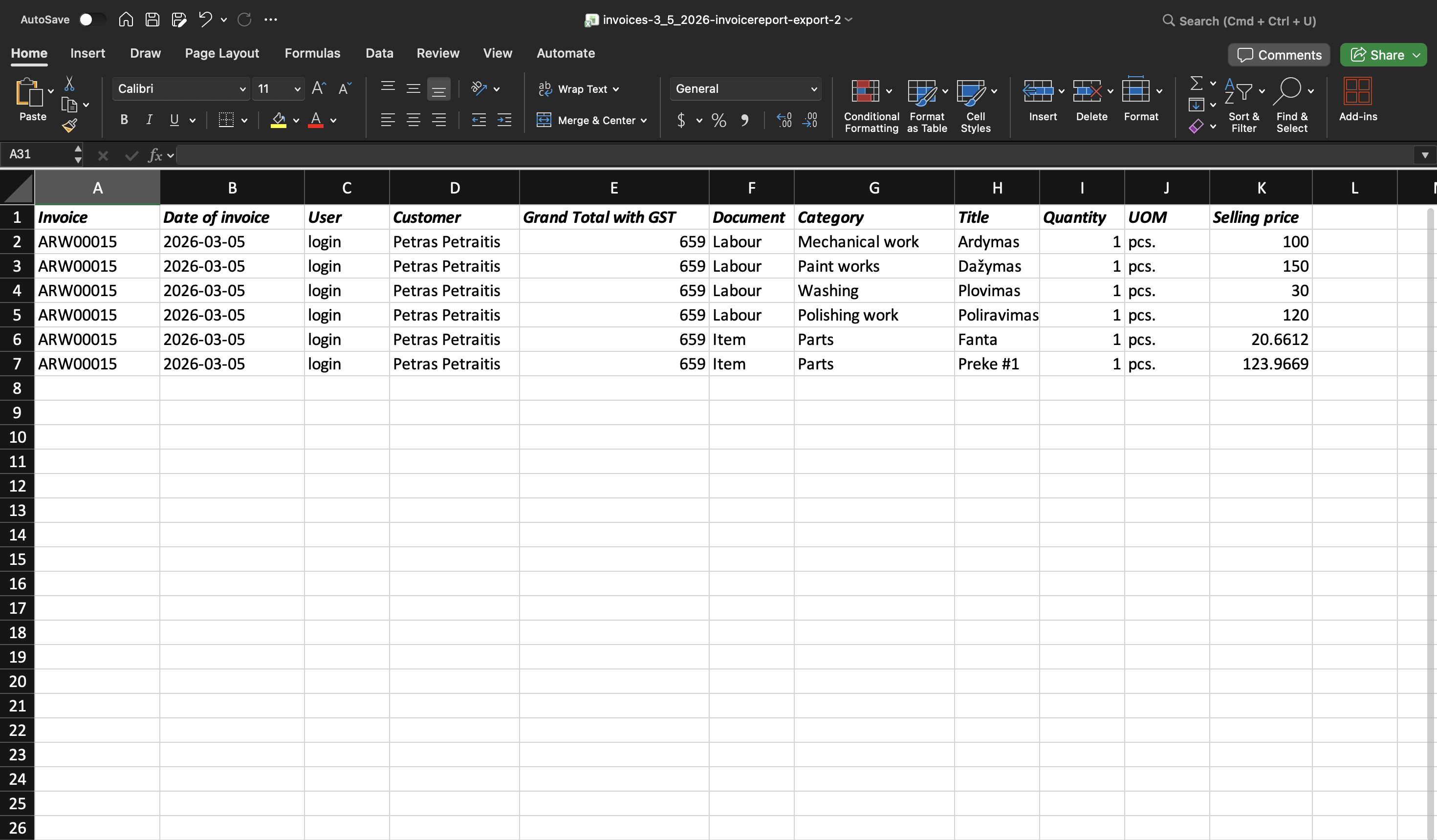 1. A new invoice export feature has been added to the system. This functionality allows you to quickly and conveniently export issued invoices in a selected format suitable for further data processing or transfer to accounting. It reduces the need for manual work, ensures more accurate data transfer, and allows smoother integration of workshop financial data into other accounting processes.